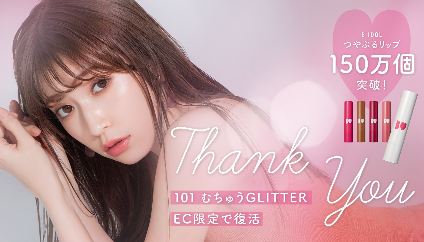 感謝の気持ちを込めて、発売時よりご好評いただき、現在も再販のお問い合わせを多数頂戴しておりますつやぷるリップ初回発売時限定色「101むちゅうGRITTER」を公式サイト限定で再販させていただきます。