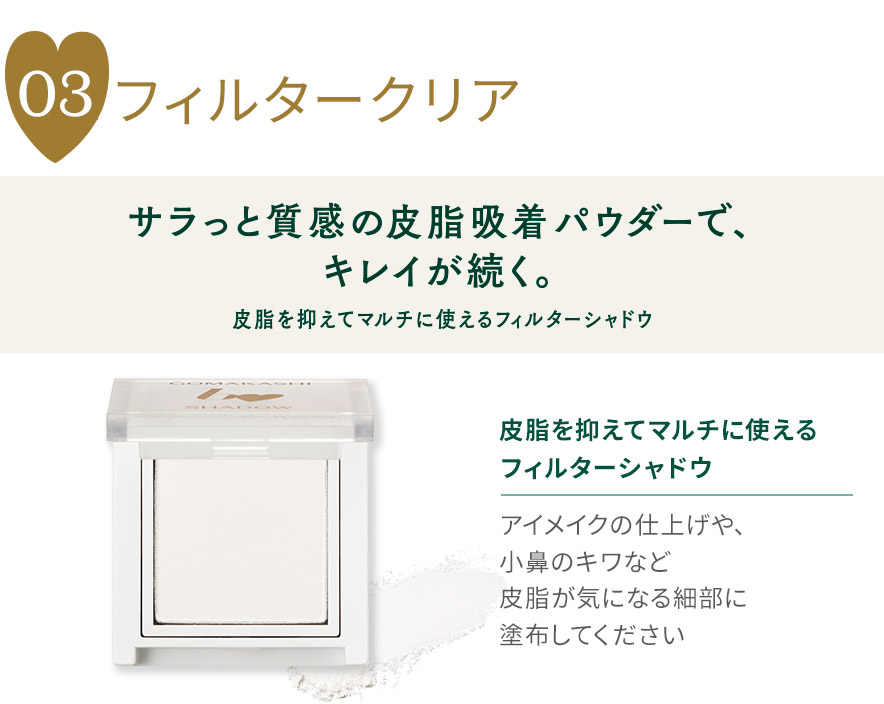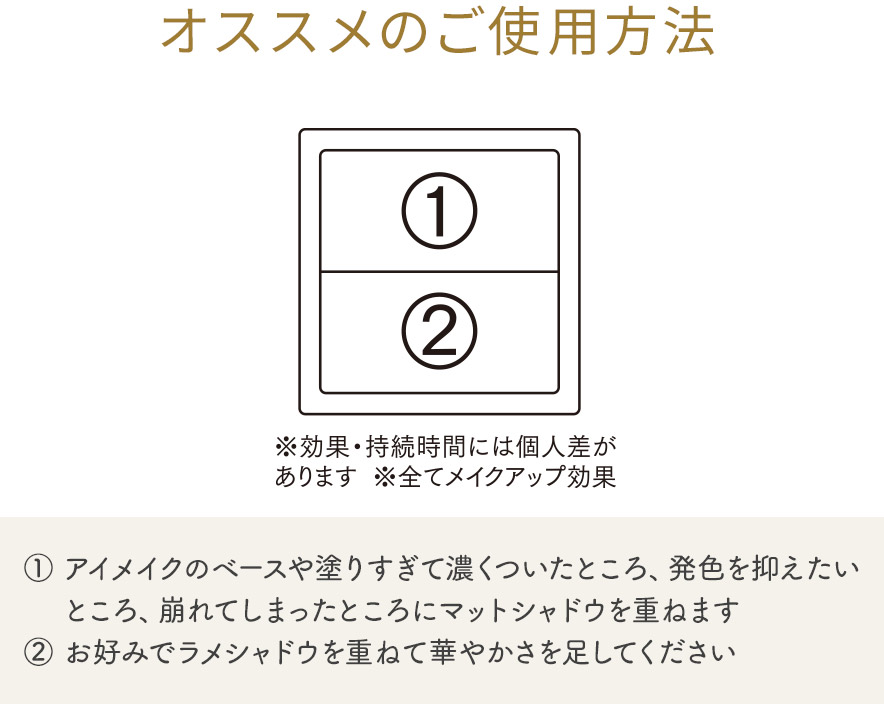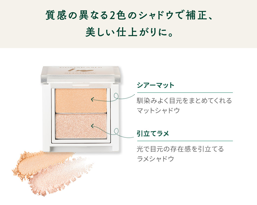 アイシャドウの上から重ねてニュアンスチェンジ、適当に塗ってもこなれ印象。困った時のお直しにも◎メイクの幅を広げるワンモアアイテム。アレンジ・お直し・そのまま使える!万能シャドウです。